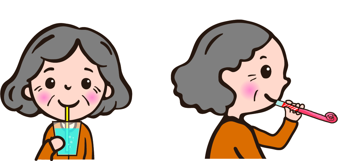 - 肺から空気を吐き出す力と痰や異物を気道から外へ吐き出すための咳の力をつける